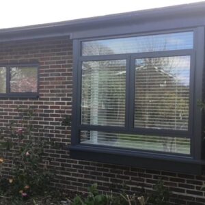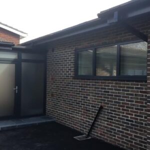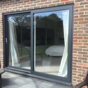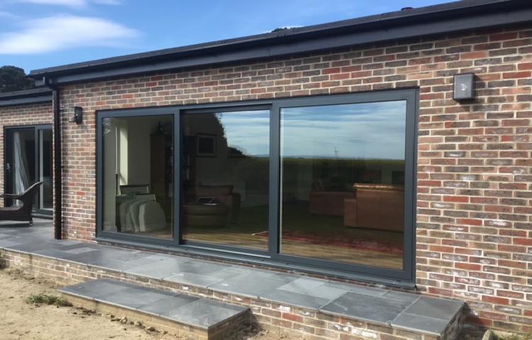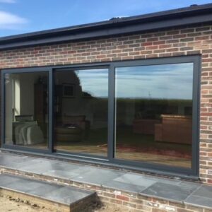 A complete renovation of an existing bungalow property with a sleek aluminium system including a front composite door, a 2 pane patio door and a 3 pane sliding door. This project looked fantastic once completed and the client is delighted with the modernised aluminium finish.