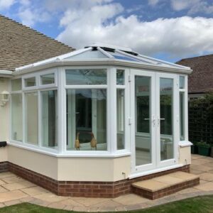 This classic conservatory has some Victorian influences, namely the faceted softened front two corners and a double hipped roof design giving an internally vaulted glazed ceiling. This beautifully finished double hipped classic conservatory is a great example of how simple conservatories can still add real value to your property and provide a lifestyle space that with the right glazing options is usable all year round.