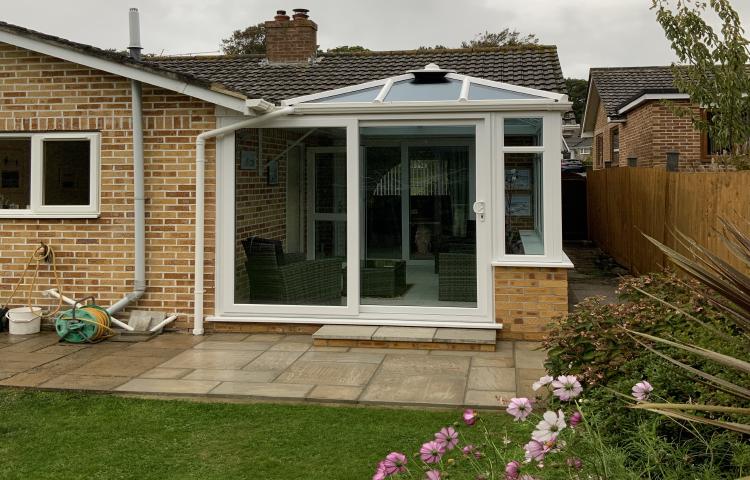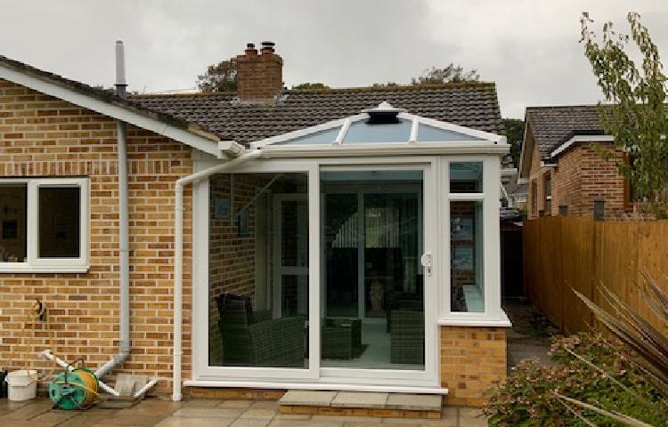 This is a classic double-hipped Edwardian conservatory using modern glazing properties to achieve all-year usability, whether in the depths of winter or heights of summer. This design onto the chalet bungalow was achieved using a fabricated box guttering system.