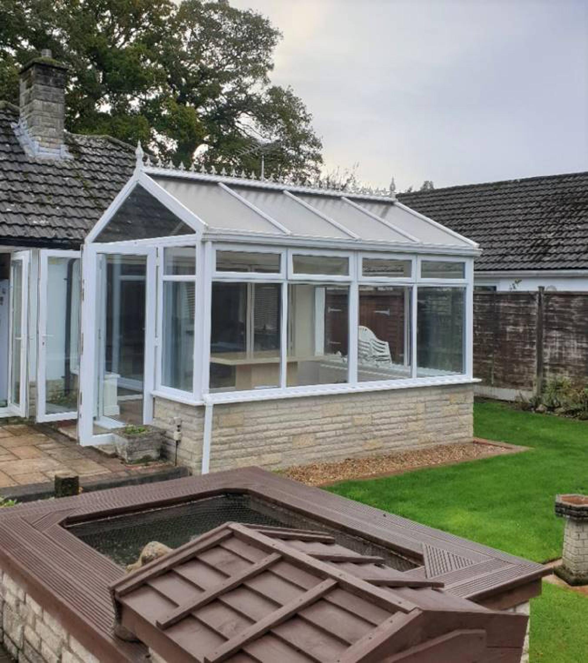 Replacement Conservatory With Solid Roof System and New PVC Windows and French Doors