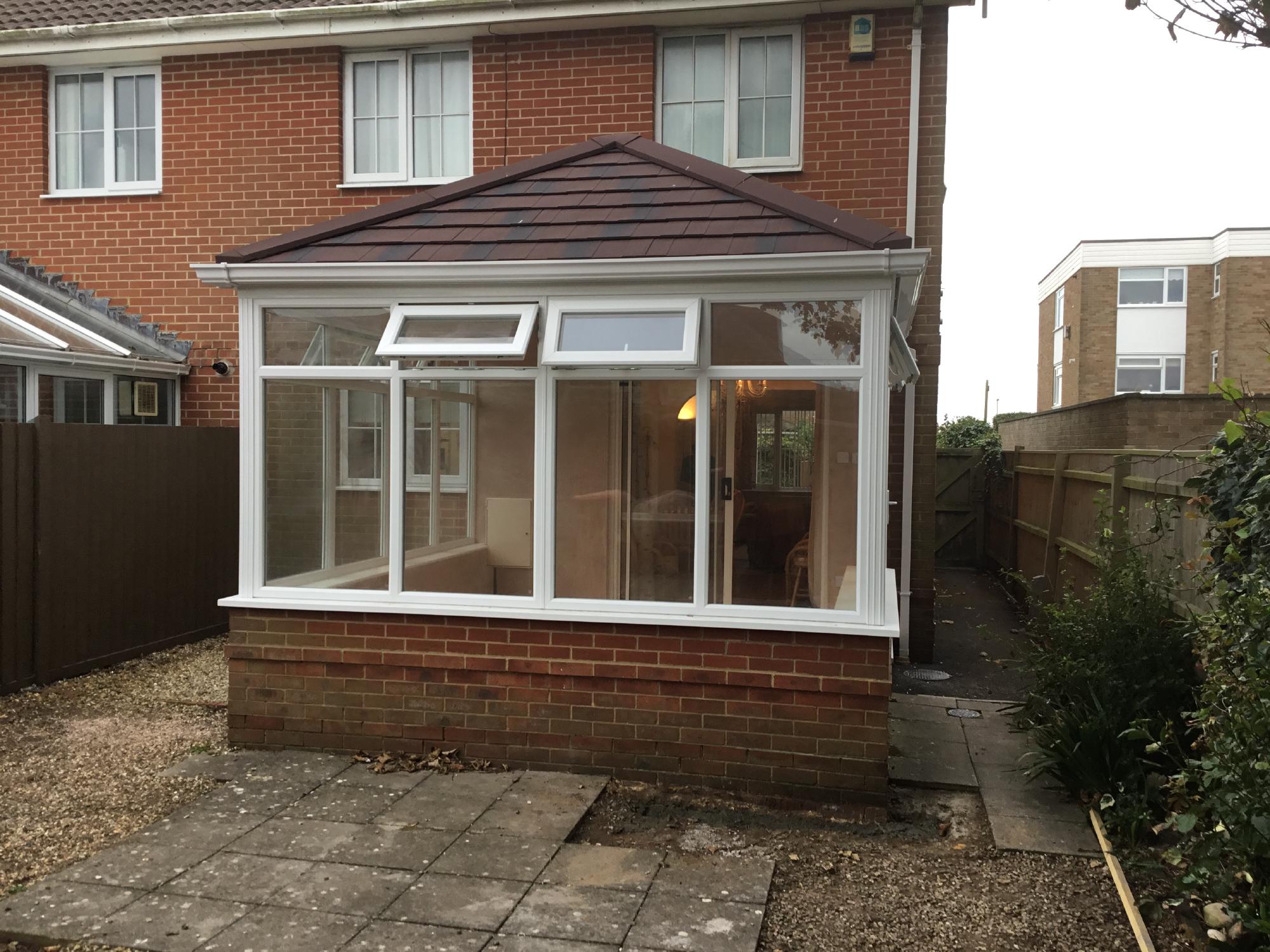 This existing conservatory originally had an old glass roof, which we replaced with our solid tiled roofing system.