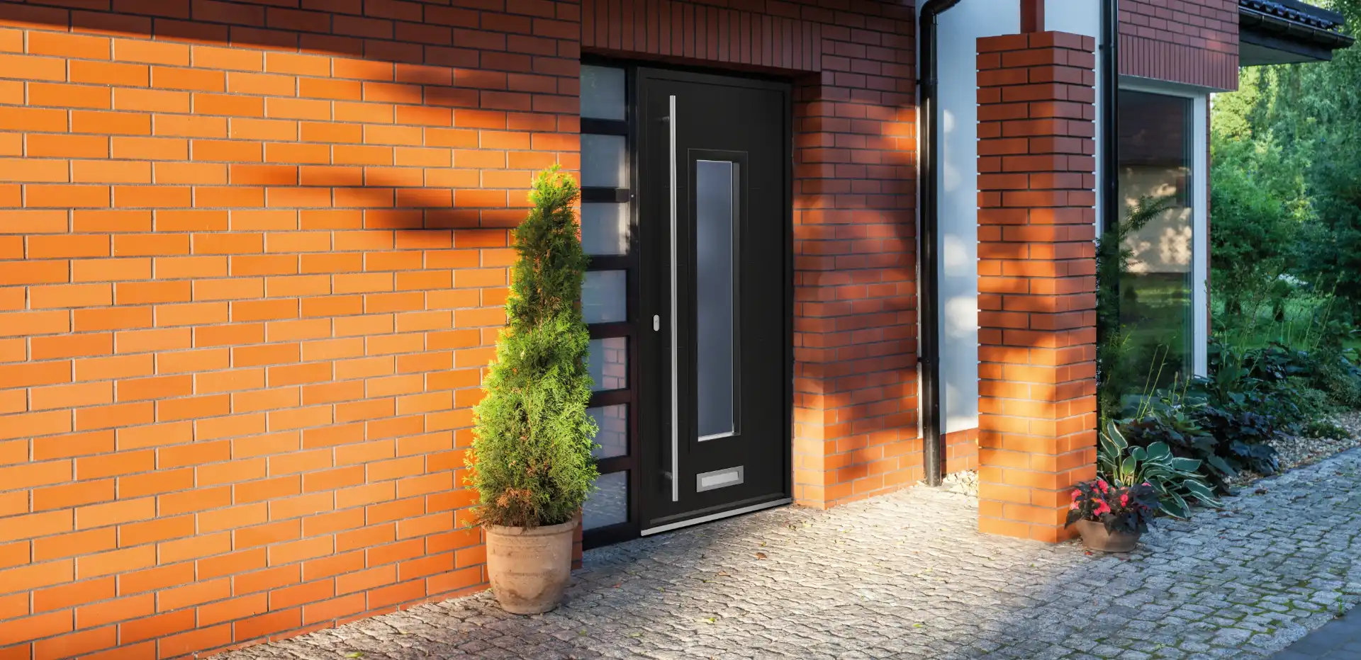 Durable, stylish, and secure. Choose from single or double doors with glazed or solid panels in countless colours.